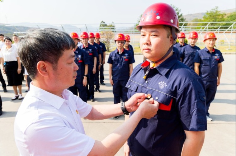 “恭喜你成為一名預(yù)備黨員,希望你再接再厲,干好本職工作,時刻以共產(chǎn)黨員的標(biāo)準(zhǔn)嚴(yán)格要求自己,在本職工作中發(fā)揮好先鋒模范作用”。攀西水工程公司黨支部書記郭家泉為新黨員況青泉佩戴黨徽,鞭策新黨員不忘初心、牢記使命,自覺履行黨員義務(wù),聽黨話、感黨恩、跟黨走,全心全意為人民服務(wù),矢志不渝為黨奮斗。