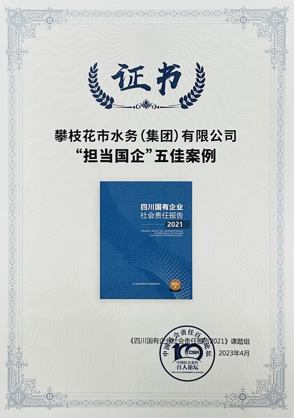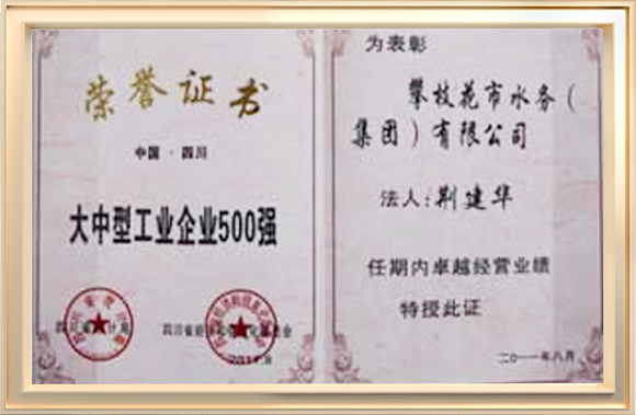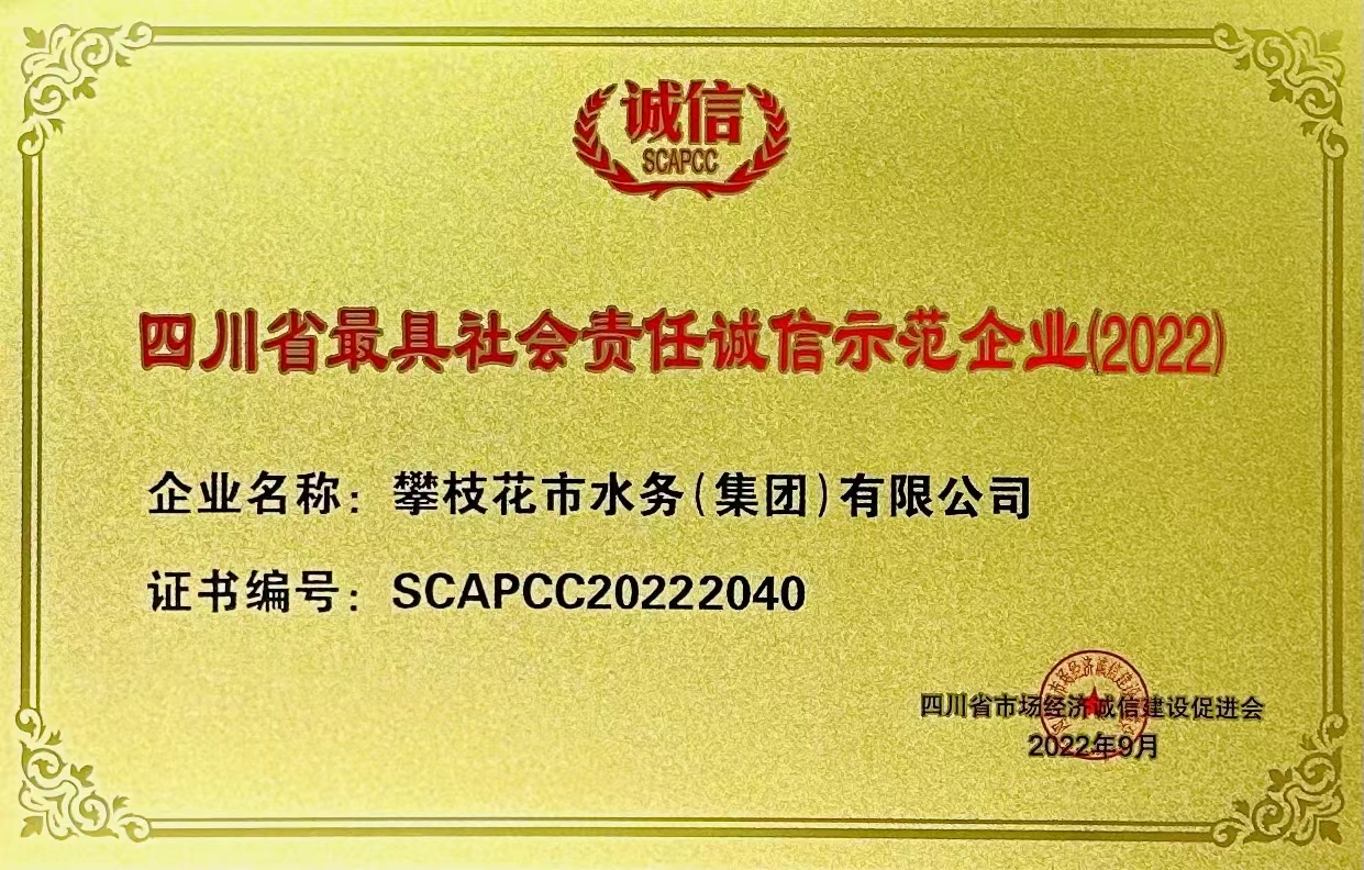 先后榮獲了全國模范勞動(dòng)關(guān)系和諧企業(yè)、全國“五一"勞動(dòng)獎(jiǎng)狀、全國“安康杯競(jìng)賽活動(dòng)優(yōu)勝單位"、中國供水排水行業(yè)突出質(zhì)獻(xiàn)單位獎(jiǎng)、全國模范職工之家、國家建設(shè)部精神文明建設(shè)先進(jìn)單位、發(fā)揚(yáng)“水之魂”精神為震后重建再立新功、四川省“五一”勞動(dòng)獎(jiǎng)狀、四川省誠信示范單位、四川省先進(jìn)企業(yè)、四川省大中型工業(yè)企業(yè)500強(qiáng)、四川省水的生產(chǎn)和供應(yīng)最效益十強(qiáng)最大規(guī)模十強(qiáng),攀枝花市企業(yè)50強(qiáng),攀枝花市A級(jí)納稅單位等數(shù)十項(xiàng)帶譽(yù)稱號(hào)。